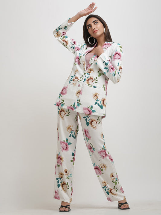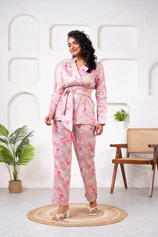 Jam Cotton Printed Pink Blazer Belt Co-ord Set