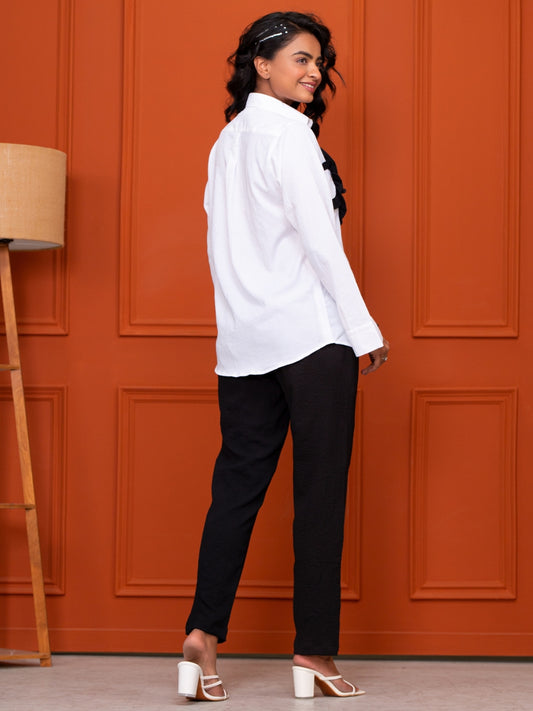 Italian Crepe White With Frills Co-Ord Set