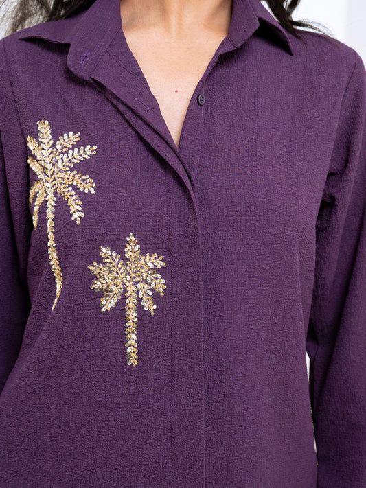 Italian Crepe Purple Palm Tree Co-Ord Set