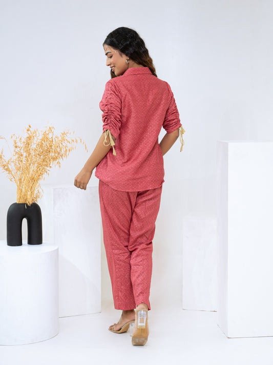Cotton Printed Pink With Shiffli Detailing Co-Ord Set