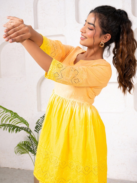 Cotton Shiffli Ombre Yellow Co-ord Set