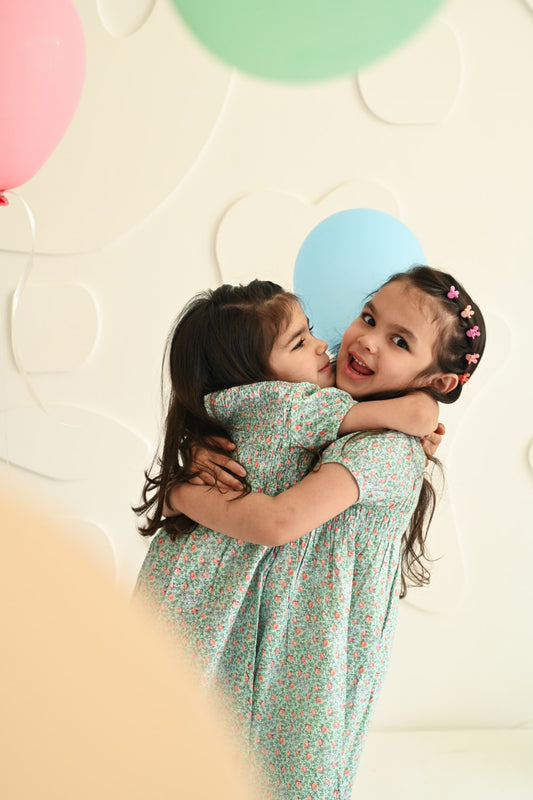 Green & Peach Floral Dress