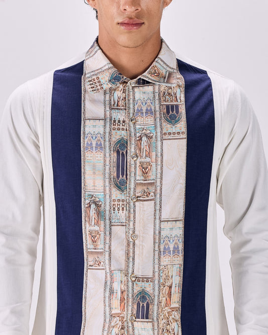 Ancient Roman Print Yoke Denim Shirt & Trouser Co-ord Set