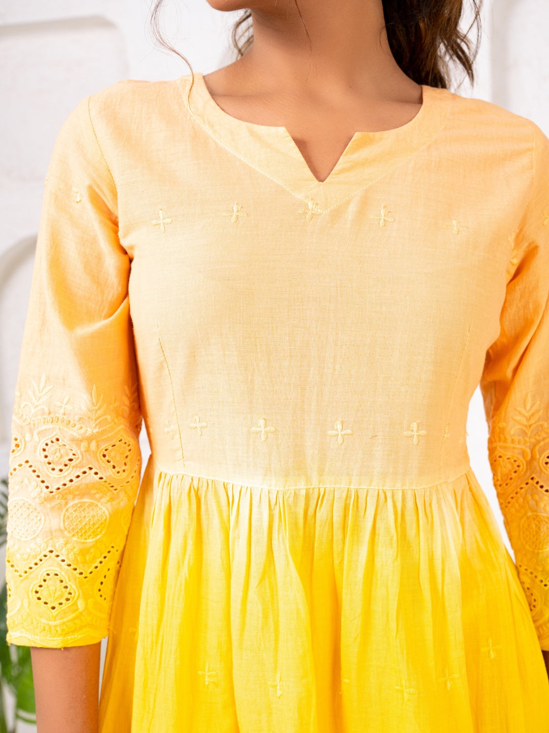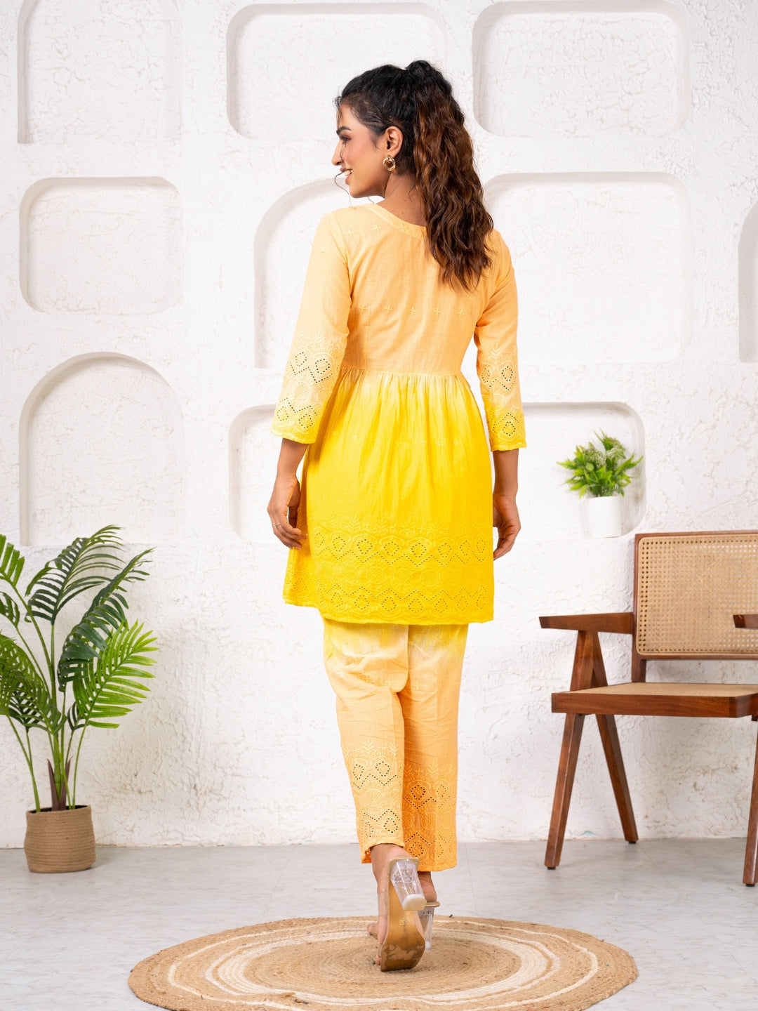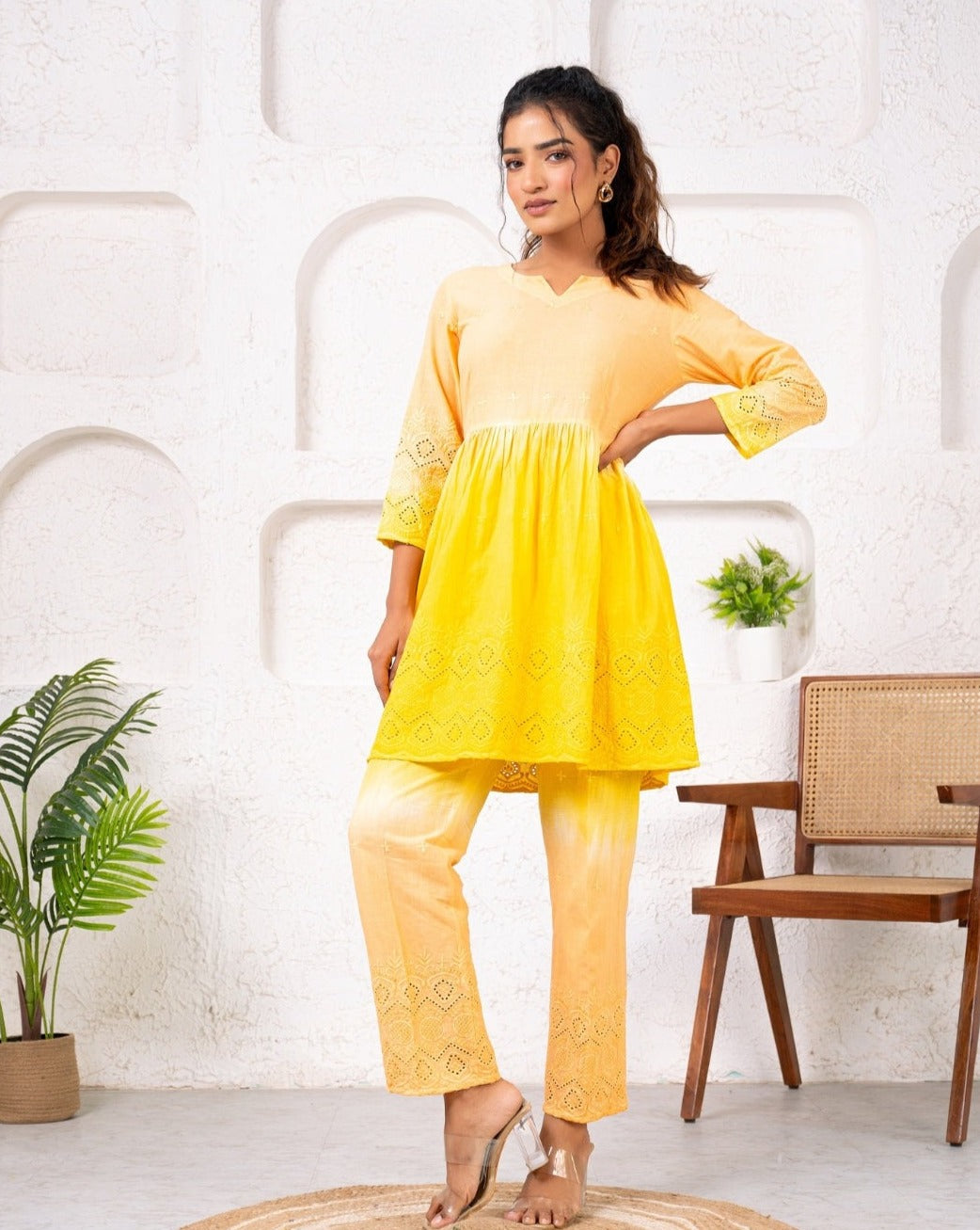 Cotton Shiffli Ombre Yellow Co-ord Set