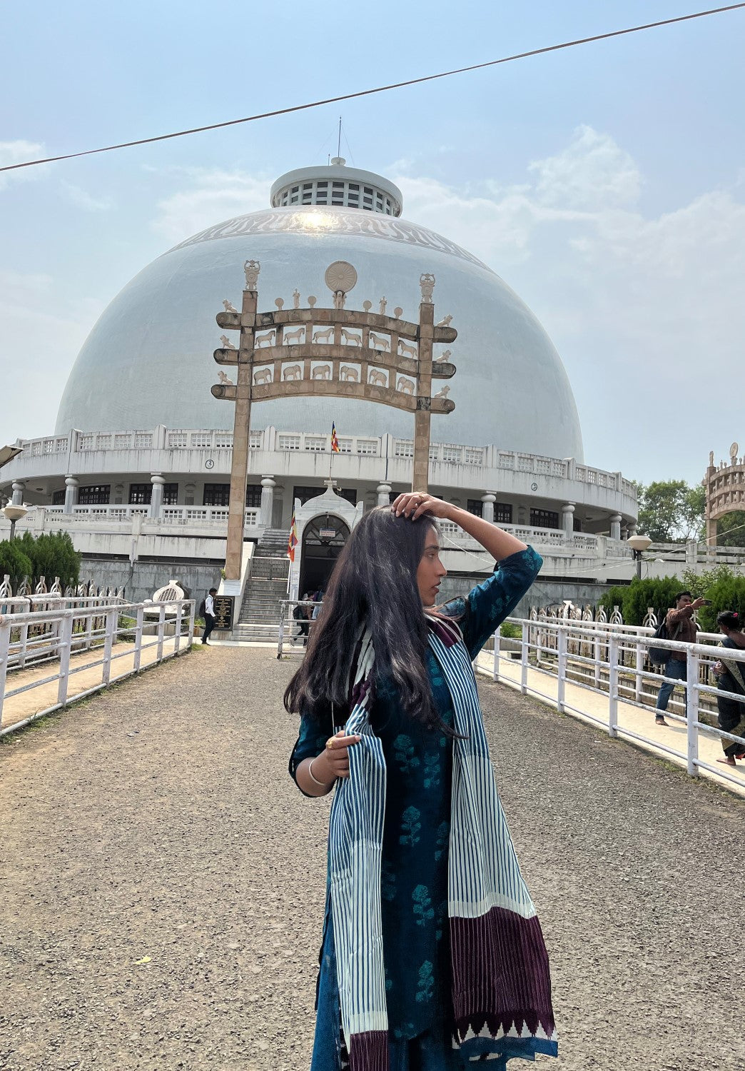 Featuring a beautiful temple pattern, this piece seamlessly blends modern and traditional Indian aesthetics, making it a versatile addition to any wardrobe. The teal and purple color combination is both vibrant and sophisticated, making it a perfect choice for both day and evening events. Crafted from a luxurious silk blend fabric, this dupatta is both elegant and comfortable to wear.
